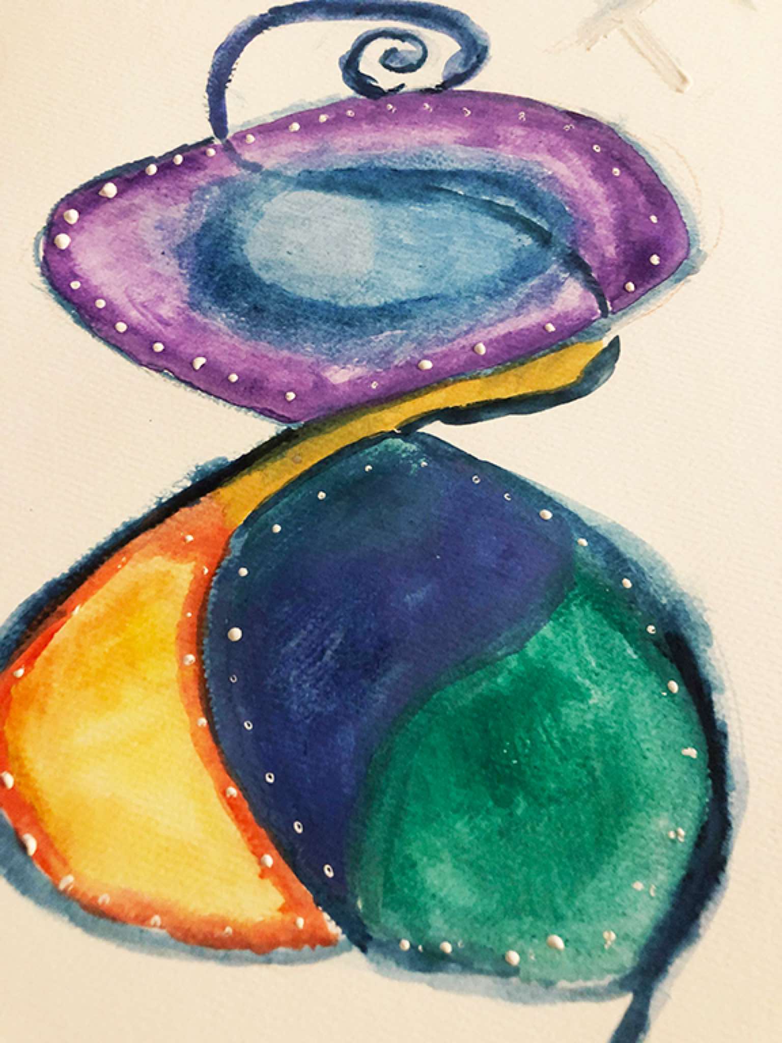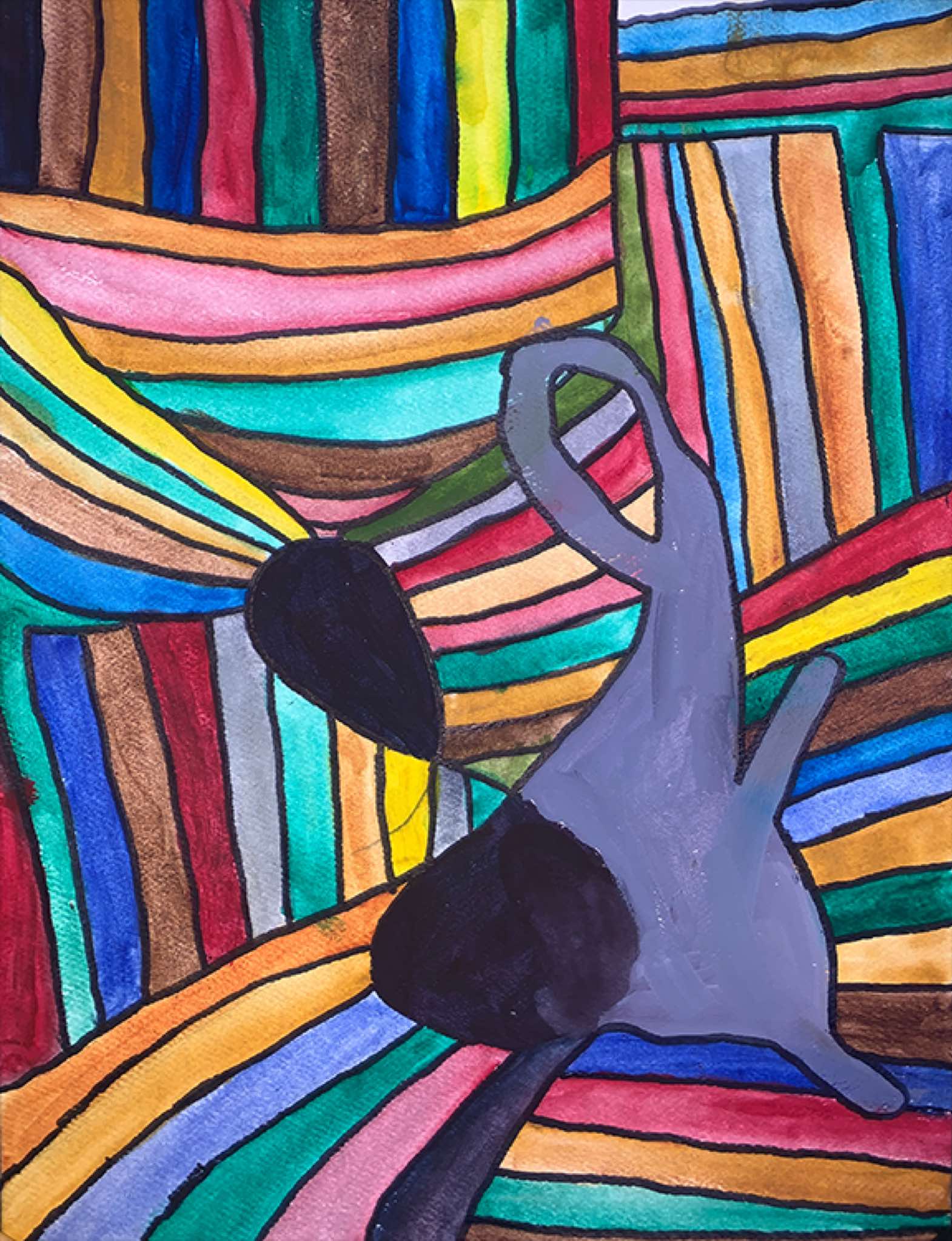 JGHS Art One students drew a blind squiggle and then expanded on it, using their natural intuition to guide them in creating these works. There were no limitations on color application and they were encouraged to be as creative as possible. This assignment was part of a unit of study that examined the Elements of Art.